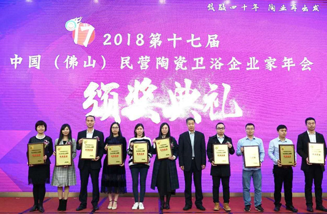 作为中国建陶卫浴行业的品牌盛会,佛山民营陶瓷卫浴企业家年会自2002年创办以来,已经成为政府相关部门、佛山市和各地陶瓷行业协会、建材市场、建陶卫浴企业家、采购商、设计师代表相聚的盛会。“十大建陶风云企业”奖项更是组委会通过对上千家知名陶瓷企业及其它相关企业的品牌影响力、社会美誉度、科技创新能力、管理机制创新、社会责任等方面进行综合评估和长期考察而评定出来的,在业界拥有很高的权威性。嘉俊陶瓷能在众多陶瓷品牌中脱颖而出,多次获得该奖项,这不仅证明了嘉俊雄厚的企业综合实力以及巨大的发展潜力,也是行业,乃至社会对嘉俊在2018年所取得成绩的充分肯定。