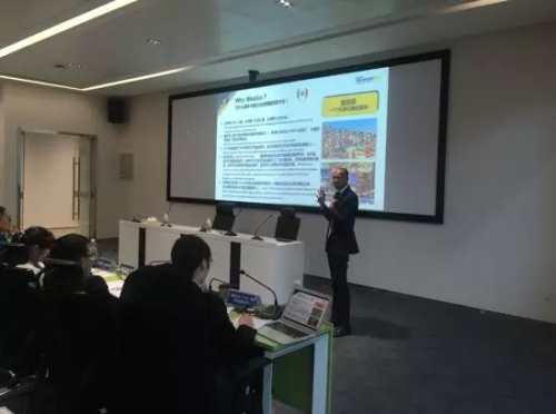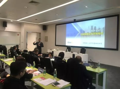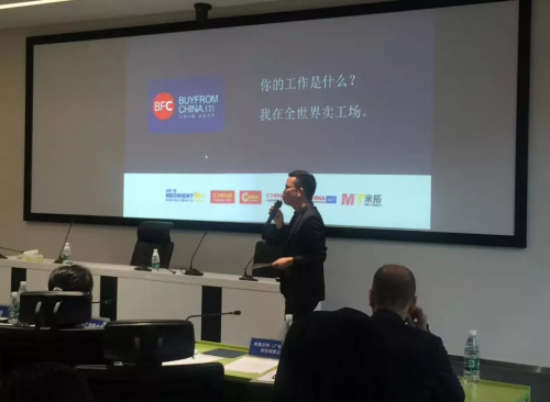 Binu先生为现场企业讲解外贸O2O新模式、分析一带一路市场及海外买家习惯,如何让品牌企业通过加盟连锁的模式走进一带一路市场。