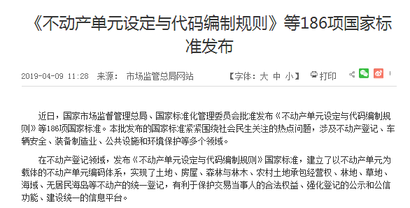 市场监管总局:《不动产单元设定与代码编制规则》国家标准发布,实现土地、房屋等不动产的统一登记