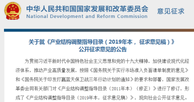 发改委发布《产业结构调整指导目录(2019本,征求意见稿)》
