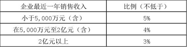(五)企业近三个会计年度(实际经营期不满三年的按实际经营时间计算,下同)的研究开发费用总额占同期销售收入总额的比例符合如下要求: