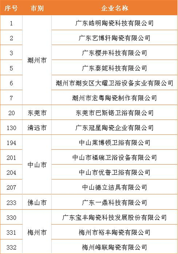经企业自愿申请,各地市中小企业行政主管部门初审推荐,专家评审,广东省工业和信息化厅初步遴选了“2019年广东省高成长中小企业”名单,共439家企业,于6月13日公示。其中陶瓷、卫浴企业有16家。
