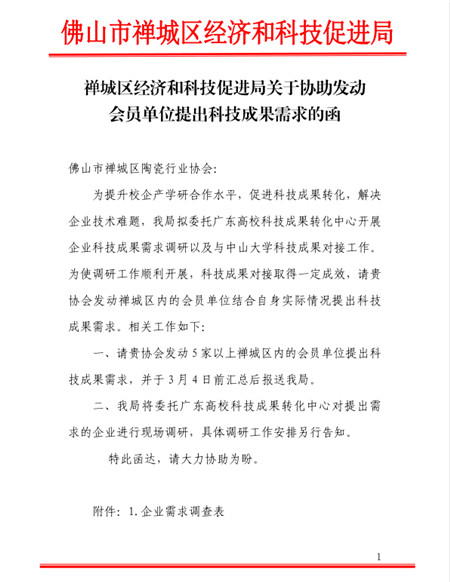 【陶企请知悉】区经科局协助企业提出科技成果需求,请各陶企踊跃参与! 2019-2-27